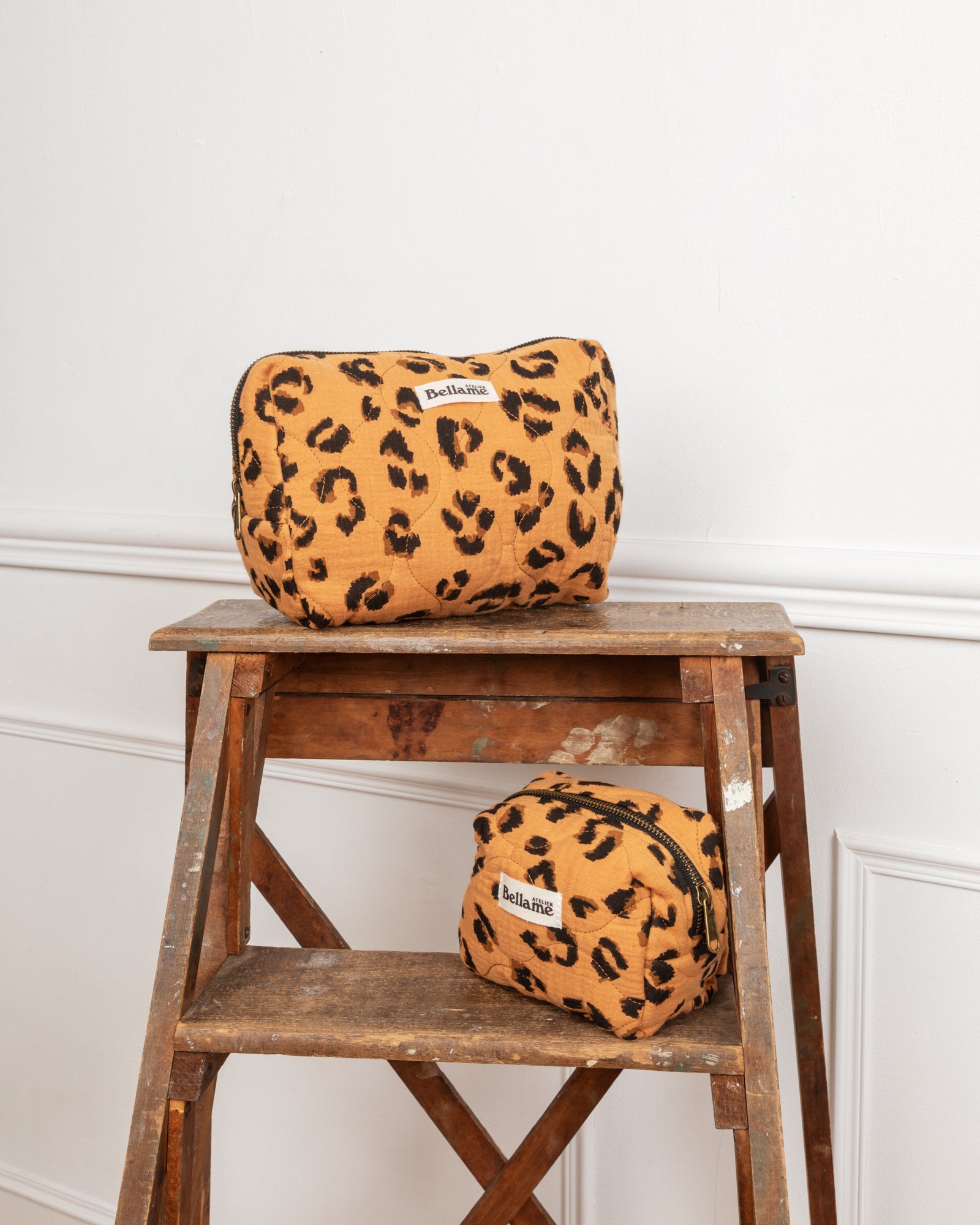 Apportez une touche sauvage à votre routine avec les trousses La Féline. Ce lot se compose d'une petite trousse (35 €) et d'une grande trousse (40 €), habillées d’élégants motifs léopard. Pratiques et sophistiquées, elles sont parfaites pour vos essentiels ou accessoires.