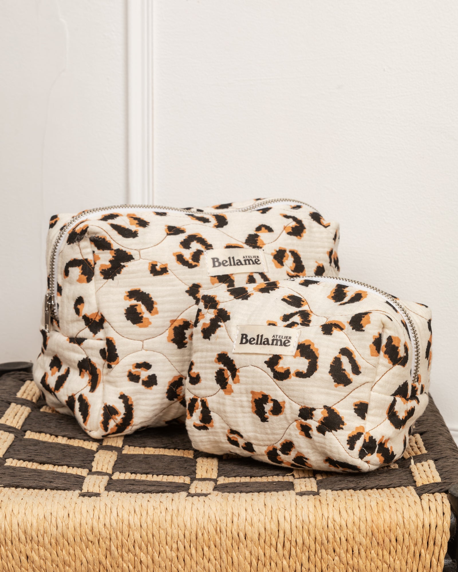 Apportez une touche sauvage à votre routine avec les trousses La Féline. Ce lot se compose d'une petite trousse (35 €) et d'une grande trousse (40 €), habillées d’élégants motifs léopard. Pratiques et sophistiquées, elles sont parfaites pour vos essentiels ou accessoires.